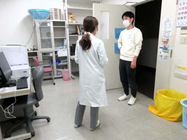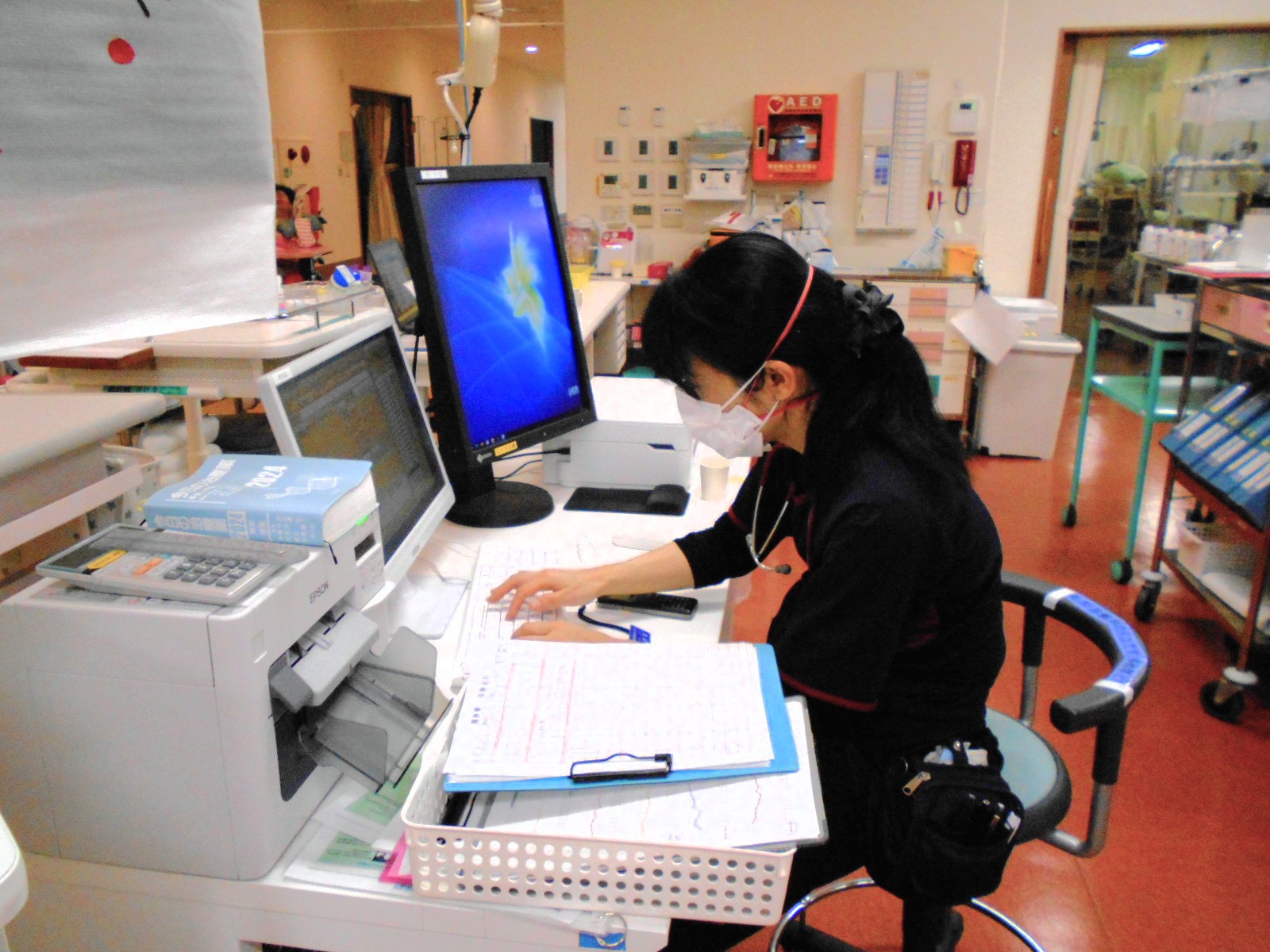 終業前に当日の利用者の状態や実施した検査・治療内容を整理し、注意が必要なケースなど当直医へひきつぎます。